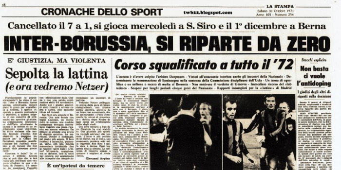 Στις 20 Οκτωβρίου 1971, η εκπληκτική Γκλάντμπαχ του Γκίντερ Νέτσερ διέλυσε την Ίντερ 7-1, σε μια ποδοσφαιρική παράσταση που ακόμη μνημονεύεται.