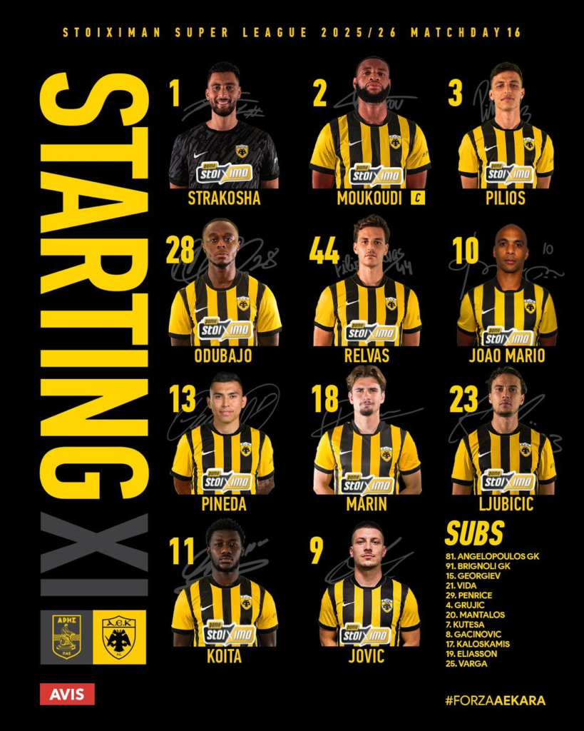 Γνωστή έγινε η ενδεκάδα της ΑΕΚ για το εκτός έδρας παιχνίδι με τον Άρη στο «Κλεάνθης Βικελίδης», με τον Μάρκο Νίκολιτς να προχωρά σε συγκεκριμένες επιλογές, κυρίως στα άκρα της άμυνας.