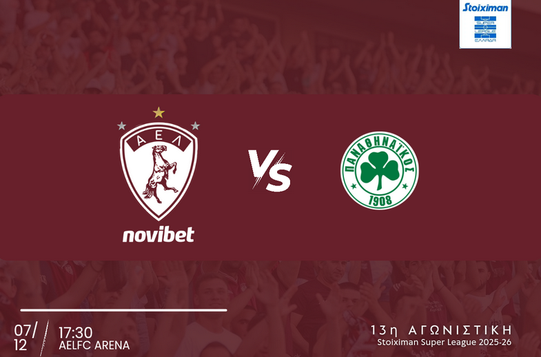 «Η ΠΑΕ ΑΕΛ Novibet ενημερώνει τους φιλάθλους της ότι ξεκίνησε η διάθεση των εισιτηρίων του αγώνα της 13ης Αγωνιστικής της Stoiximan Super League με αντίπαλο τον Παναθηναϊκό στο AEL FC ARENA (07/12, 17:30).