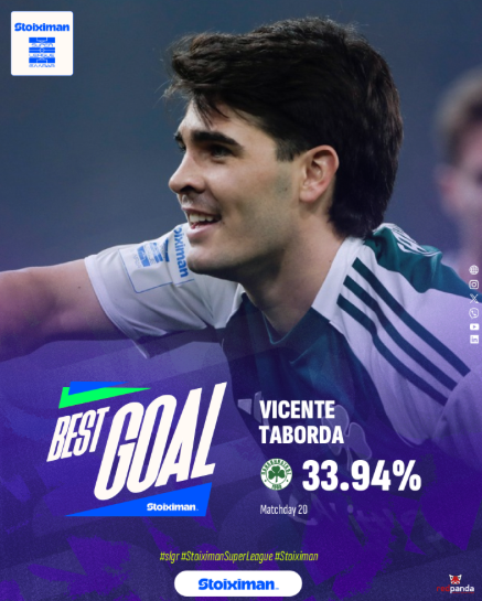 “Η Super League ανακοινώνει τα αποτελέσματα του διαγωνισμού, μετά από ψηφοφορία των φιλάθλων, του διαγωνισμού Stoiximan Best Goal 20ής αγωνιστικής: