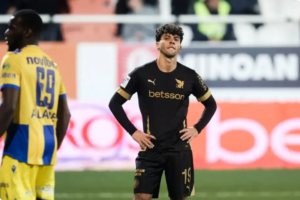 Οι γηπεδούχοι συνέχισαν να έχουν τον έλεγχο, με τον Φούντα να ξεχωρίζει με την κινητικότητά του, ενώ στο 39’ ο Καραχάλιος βρέθηκε κοντά στο δεύτερο γκολ, όμως η κεφαλιά του σταμάτησε στο δοκάρι σε φάση που ακυρώθηκε τελικά ως οφσάιντ.