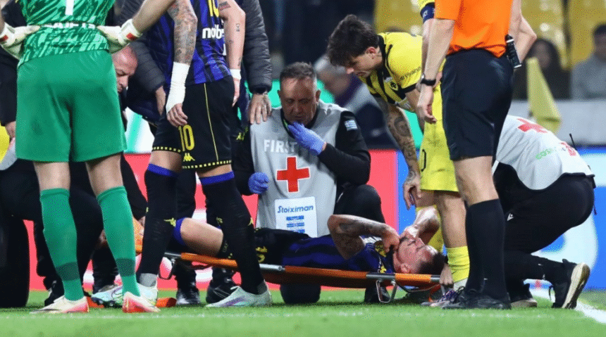 Ο Αλφαρέλα μεταφέρθηκε εκτός γηπέδου με φορείο, ενώ στο πάγκο του Άρη οι γιατροί έκοψαν με ψαλίδι τις κάλτσες του για να μην κινήσει το τραυματισμένο πόδι του. Οι πρώτες εκτιμήσεις αναφέρουν πιθανό κάταγμα στο μετατάρσιο.