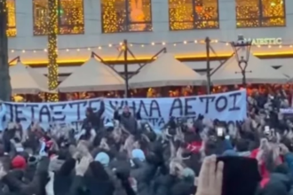 ΠΑΟΚ: Οι οπαδοί του Ολυμπιακού τίμησαν με πανό στο Άμστερνταμ τα θύματα της τραγωδίας