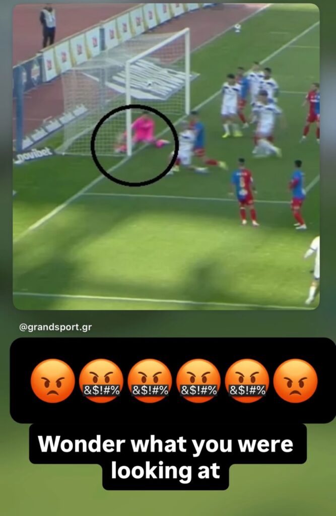 Ο ίδιος διερωτάται τι είδε ο διαιτητής του αγώνα ο κ. Τσακαλίδης στο φάουλ που εκτέλεσε ο Ταξιάρχης Φούντας, με την μπάλα αν και αρχικά φαίνεται πως έχει περάσει τη γραμμή, τελικά να μην επικυρώνεται.