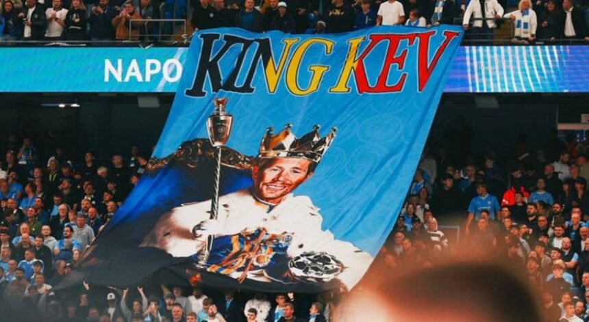 Λογικό και αναμενόμενο τη στιγμή που πάτησε το πόδι του στο χορτάρι να γνωρίσει την αποθέωση από τον κόσμο, ενώ οι φίλοι της Σίτι είχαν ετοιμάσει και ένα υπέροχο πανό που έγραφε «KING KEV» με τον ίδιο ντυμένο ως βασιλιά.
