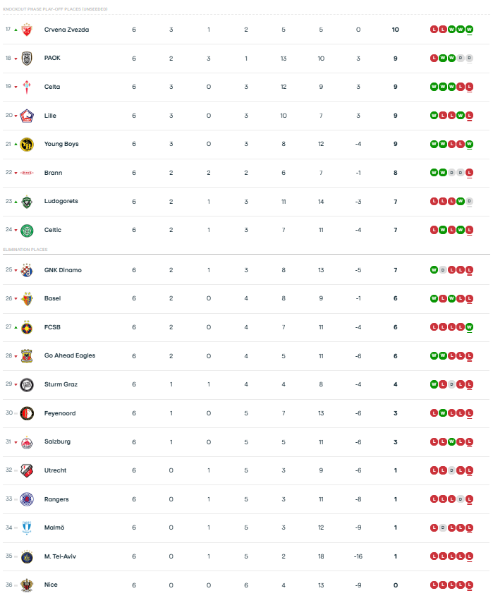 Ολοκληρώθηκε η 6η αγωνιστική του UEFA Europa League και έτσι γίναμε λίγο ακόμη σοφότεροι σχετικά με την Βαθμολογία…