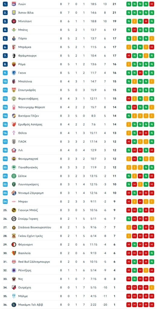 Με το πέρας της 8ης αγωνιστικής ολοκληρώθηκε η φετινή League Phase του Europa League, με τις δύο ελληνικές ομάδες να εξασφαλίζουν την παρουσία τους στα νοκ-άουτ της διοργάνωσης και τις Λυών και Βίλα να ισοβαθμούν στην κορυφή.