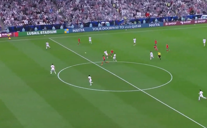 Η φάση είχε και απρόοπτο, καθώς ο γκολκίπερ της Ιορδανίας τραυματίστηκε στην προσπάθειά του να αποτρέψει το γκολ, πέφτοντας πάνω στο δοκάρι.