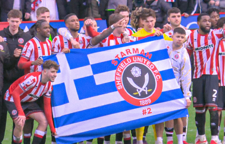 Στο φινάλε, το ποδόσφαιρο πέρασε σε δεύτερη μοίρα. Οι παίκτες της Γιουνάιτεντ πανηγύρισαν με ελληνική σημαία αφιερωμένη στον αδικοχαμένο Τζώρτζ Μπάλντοκ. Πάνω στη σημαία υπήρχε το σήμα της ομάδας, το παρατσούκλι «Starman» και ο αριθμός 2, σε μια συγκινητική κίνηση μνήμης για τον Έλληνα διεθνή που τίμησε τη φανέλα του συλλόγου.