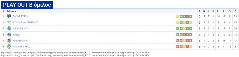 Την απόφαση για αφαίρεση έξι βαθμών από το Αιγάλεω αποφάσισε το διαιτητικό δικαστήριο της ΕΠΟ λόγω χρεών στους ποδοσφαιριστές Γιώργο Χριστοδουλή και Πάρη Μπάμπη, οι οποίοι εξασφάλισαν τις αποφάσεις επιβολής και ενεργοποίησης ποινών.