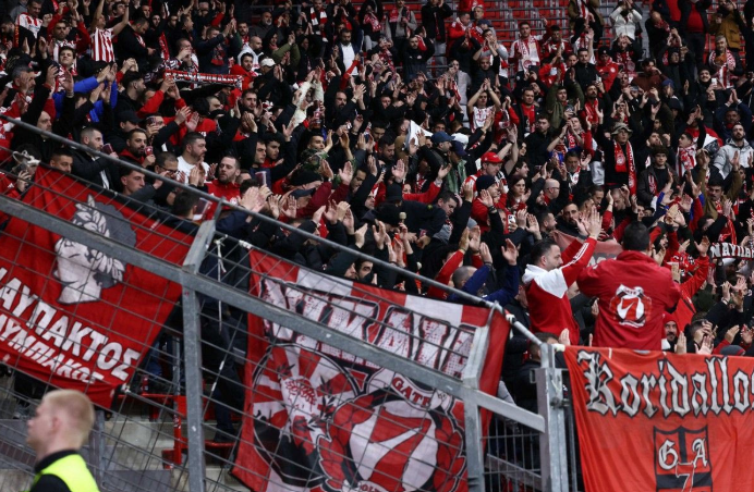 Το «παρών» στη BayArena δίνουν πάνω από 4.000 φίλοι των ερυθρολεύκων που στηρίζουν την προσπάθεια των ποδοσφαιριστών του Χοσέ Λουίς Μεντιλίμπαρ. Ο Στρατηγικός Σύμβουλος και Πρέσβης του Ολυμπιακού κ. Κριστιάν Καρεμπέ λίγο πριν τη σέντρα του αγώνα θέλησε να αναφερθεί στις δηλώσεις του στην κάμερα του MEGA στη ζέση την οποία δημιουργούν οι οπαδοί των Πειραιωτών.