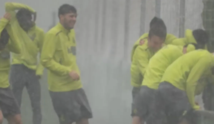 Χάος επικράτησε στην προπόνηση της Σανταντέρ ενόψει του αγώνα με τη Σαραγόσα στη La Liga 2, καθώς οι θυελλώδεις άνεμοι και η έντονη βροχόπτωση μετέτρεψαν το γήπεδο σε… πεδίο μάχης και όχι σε χώρο ποδοσφαίρου. Οι ποδοσφαιριστές έτρεχαν για να προστατευτούν από τις καιρικές συνθήκες, με τον σύλλογο πάντως να αντιμετωπίζει το σκηνικό με χιούμορ, ανεβάζοντας στα social media βίντεο με τη χαρακτηριστική λεζάντα: «σήμερα δεν είναι μέρα για tiki-taka».