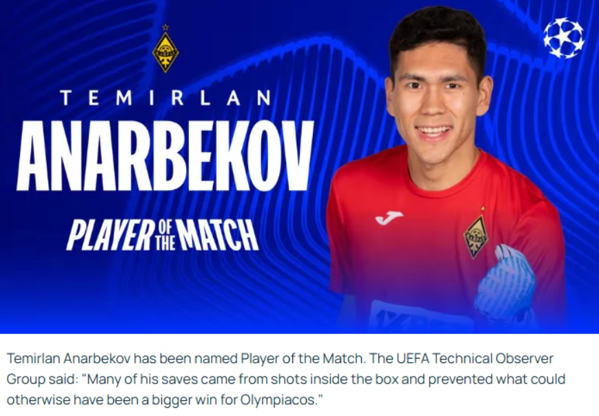 Στο παιχνίδι, ο Χρήστος Μουζακίτης ξεχώρισε στη μεσαία γραμμή, ενώ ο Ζέλσον Μαρτίνς ήταν ο δημιουργικός παράγοντας πίσω από τη νίκη. Παρά την κυριαρχία του Ολυμπιακού, ο τίτλος του MVP δόθηκε στον τερματοφύλακα της Καϊράτ, Τεμιρλάν Αναρμπέκοφ, ο οποίος έκανε οκτώ εντυπωσιακές αποκρούσεις και κράτησε την ομάδα του κοντά στο σκορ μέχρι το τέλος.