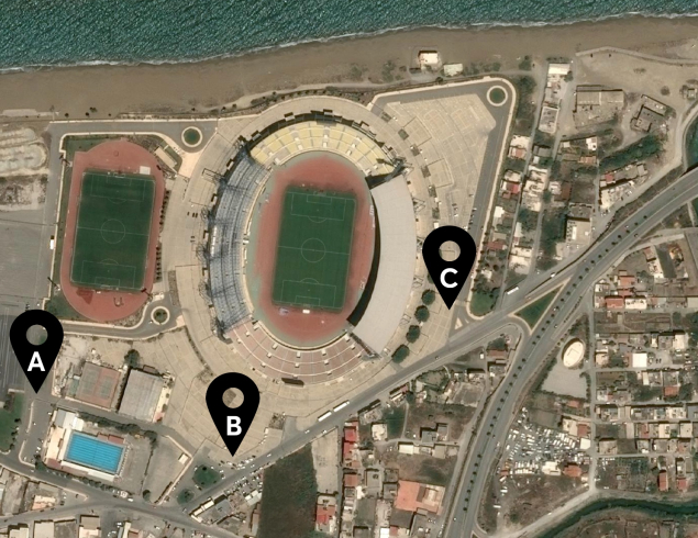 - Οι κάτοχοι εισιτηρίων στις Θύρες 5, 6 και 7 (Θύρες φιλοξενούμενης ομάδας) θα εισέρχονται από την ΕΙΣΟΔΟ C, στην ανατολική πλευρά του σταδίου.