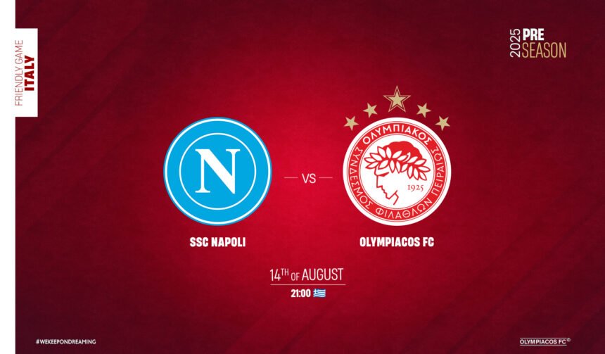 Ο Ολυμπιακός συνεχίζει την προετοιμασία του για τη νέα σεζόν με σειρά δυνατών φιλικών αναμετρήσεων απέναντι σε κορυφαίες ομάδες της Ευρώπης. Όπως έγινε επίσημα γνωστό, οι Πειραιώτες θα αντιμετωπίσουν την πρωταθλήτρια Ιταλίας Νάπολι στις 14 Αυγούστου, σε ένα δυνατό crash test λίγο πριν από την έναρξη των επίσημων υποχρεώσεων.