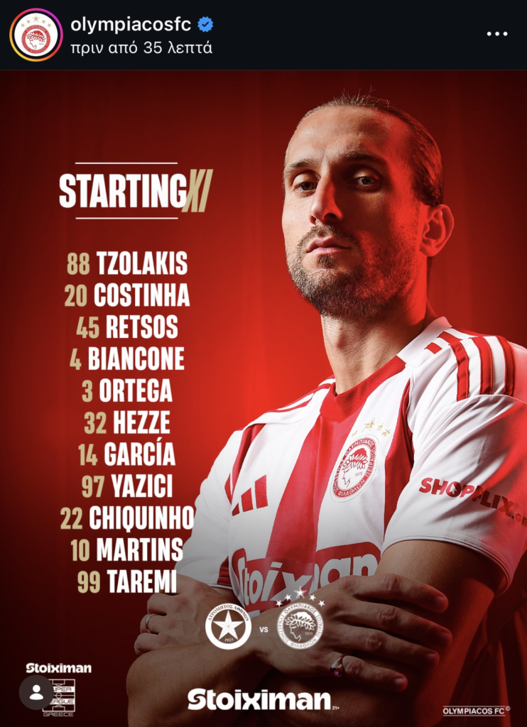 Στον πάγκο θα βρίσκονται οι: Μπότης, Καλογερόπουλος, Νασιμέντο, Γιάρεμτσουκ, Μουζακίτης, Σιπιόνι, Βέχο, Στρεφέτσα και Μάνσα.