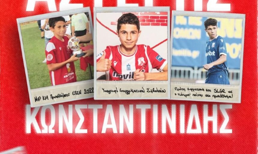 Ο Κωνσταντινίδης, γιος του παλαίμαχου άσου, Σωτήρη, είναι γεννημένος στις 16/09 του 2009 και τον περασμένο Μάιο πήρε χρόνο συμμετοχής στην αναμέτρηση του Πανσερραϊκού με τον Παναιτωλικό, για να γίνει ο νεαρότερος ποδοσφαιριστής που έχει αγωνιστεί στην κορυφαία κατηγορία της χώρας μας!