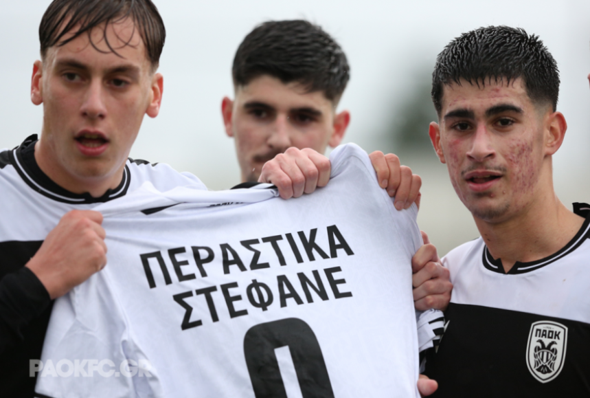 Μετά την κίνηση των Αντρίγια Ζίβκοβιτς, Γιάννη Κωνσταντέλια, Δημήτρη Χατσίδη και Τάισον που του έστειλαν μηνύματα στήριξης, η Κ19 του ΠΑΟΚ στη Σουρωτή αφιέρωσε τη νίκη της επί του Άρη (2-1) στον «Στεφ».