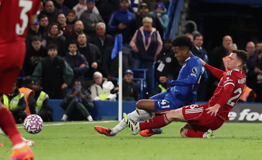 Η πρώτη φάση κορυφαίας ευκαιρίας για την Τσέλσι ήρθε στο 38’ με το πλασέ του Γκαρνάτσο, ενώ οι Reds απάντησαν με κεφαλιά του Ίσακ στο 44’.