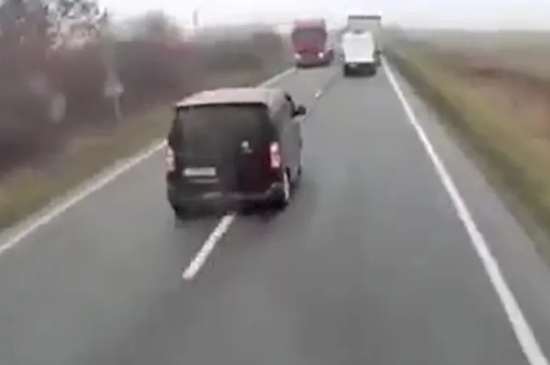 Σοκαριστικό υλικό από κάμερα αυτοκινήτου που καταγράφει τη στιγμή δείχνει το βαν να μπαίνει στο αντίθετο ρεύμα κυκλοφορίας για να πραγματοποιήσει τον ελιγμό.