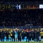 Στο τέλος του αγώνα οι παίκτες των Πρασίνων πήγαν στην πλευρά των φιλάθλων τους και τους ευχαρίστησαν για την παρουσία τους στο Ibrox.