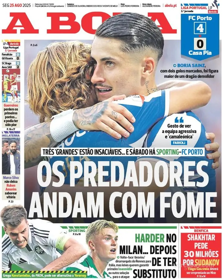 Την ίδια στιγμή, η A Bola επισημαίνει πως η μεταγραφή του Χάρντερ στη Μίλαν θα προχωρήσει μόνο όταν η Σπόρτινγκ εξασφαλίσει τον αντικαταστάτη του. Ο Ιωαννίδης βρίσκεται στην κορυφή της λίστας, με το κλαμπ της Λισαβόνας να εξετάζει ωστόσο και άλλες εναλλακτικές για την ενίσχυση της επιθετικής του γραμμής.