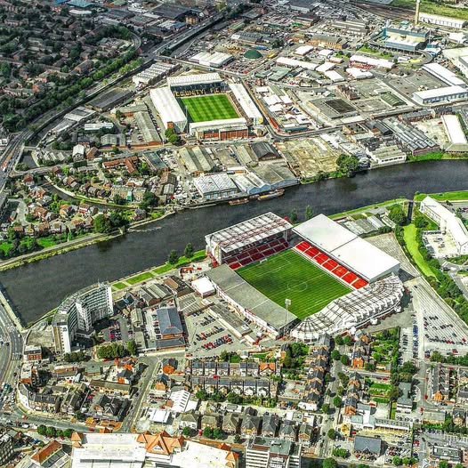 Άλλο ένα γειτονικό ντέρμπι στο Ηνωμένο Βασίλειο είναι αυτό μεταξύ της Notts County και της Nottingham Forest. Σε απόσταση μόλις 280 μέτρων βρίσκονται το Meadow Lane (έδρα της Notts County, με περίπου 20.000 θέσεις) και το City Ground (έδρα της Nottingham Forest, με πάνω από 30.000 θέσεις). Ανάμεσά τους περνά ο ποταμός Τρεντ. Το Meadow Lane είναι χτισμένο ανάμεσα σε βιομηχανικά κτίρια, ενώ το City Ground βρίσκεται στη νότια όχθη του ποταμού δίπλα στη γέφυρα Trent Bridge. Παρότι οι δύο ομάδες αγωνίζονται σε διαφορετικές κατηγορίες, η γειτνίαση των γηπέδων τους είναι μοναδική.