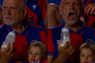 Σουρεαλιστική στιγμή στη Σαν Λορέντσο: Παππούς προσπαθεί να ταΐσει το μικρό του εν μέσω αγώνα